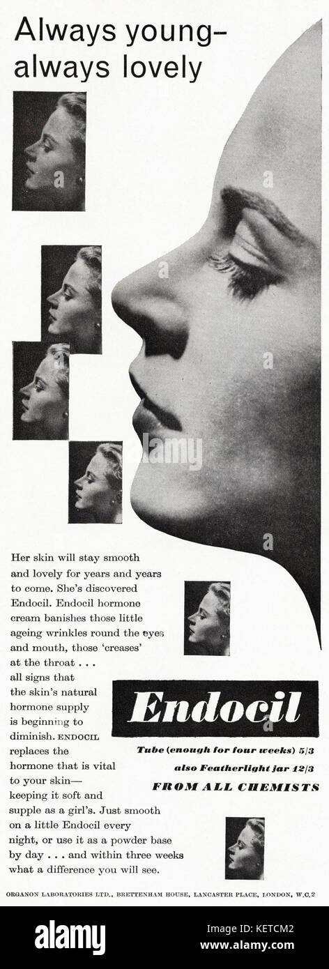 1950s Old Vintage Original Advert British Magazine Advertisement Advertising Endocil Hormone Skin Cream Dated 1958 Stock Photo Alamy